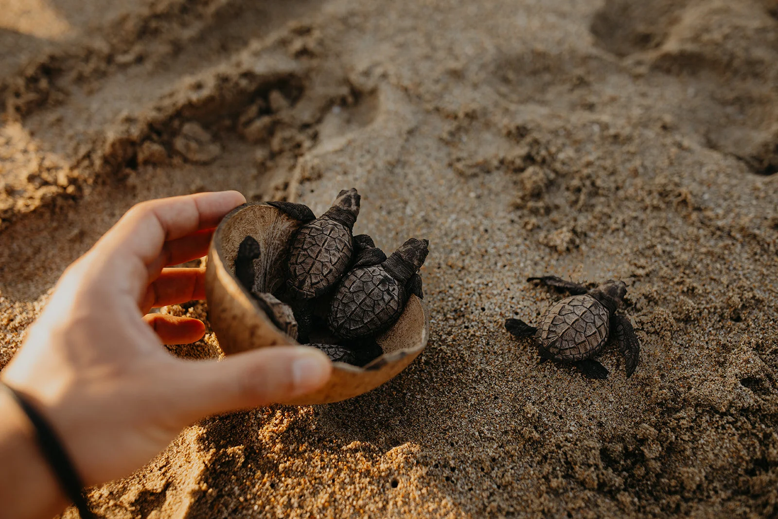 Just before sunrise, the ding a ling of a bell can be heard faintly over the roaring ocean. That would be Lorenzo, the Sanctuary Coordinator, and it means a nest of turtles have hatched overnight and are ready to be released into the ocean. Timing is crucial, the survival chances of the turtles are very low and Scientists estimate that only one in 1000 baby turtles survive to adulthood, so they need to be given the best chances possible to survive and in this case it means swimming out as far as possible before the birds come looking for breakfast.